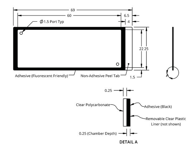 | 规格: | chamber volume 280-330 μL, size L × W × thickness 22 mm × 60 mm × 0.25 mm, ports diam. 1.5 mm |