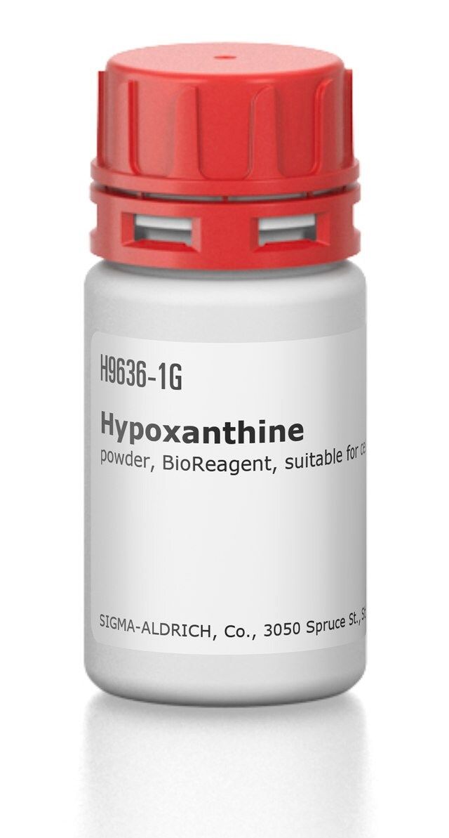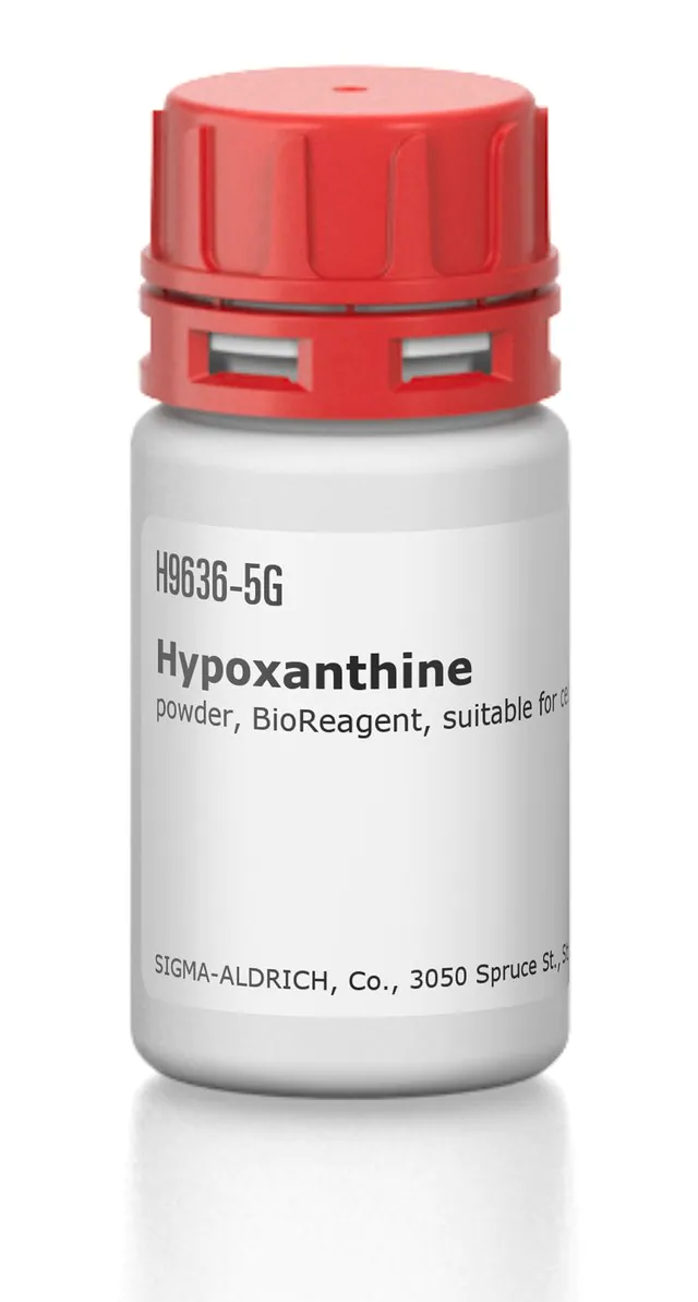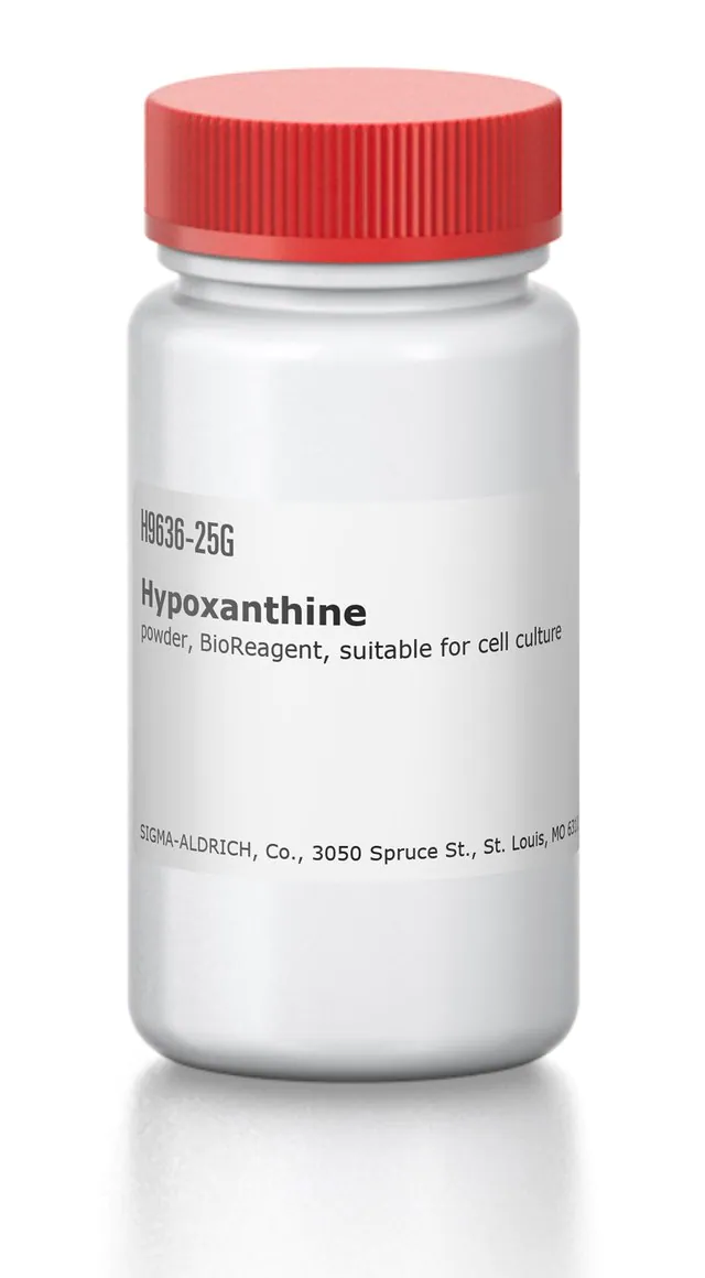 | Application【应用】 | 次黄嘌呤是一种营养添加剂,适用于细菌、寄生虫(恶性疟原虫)和动物细胞等多种细胞培养应用。 次黄嘌呤是杂交瘤技术所用选择培养基的组分。 次黄嘌呤已被用于: