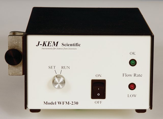 Precisely monitors the flow rate of water through a condenser, water bath, or other piece of equipment. If the flow rate falls below the minimum rate set by the user (i.e. loss of pressure, broken hose), power is turned off to the monitor′s output receptacle and any equipment plugged into it. Power remains off until being manually reset. The optional water shut off valve stops water flow during an alarm condition preventing a flooded lab. With safety as its primary goal, the J-KEM Water Flow Monitor measures the actual water flow rate, rather than back pressure as in commonly measured by lower quality instruments. |