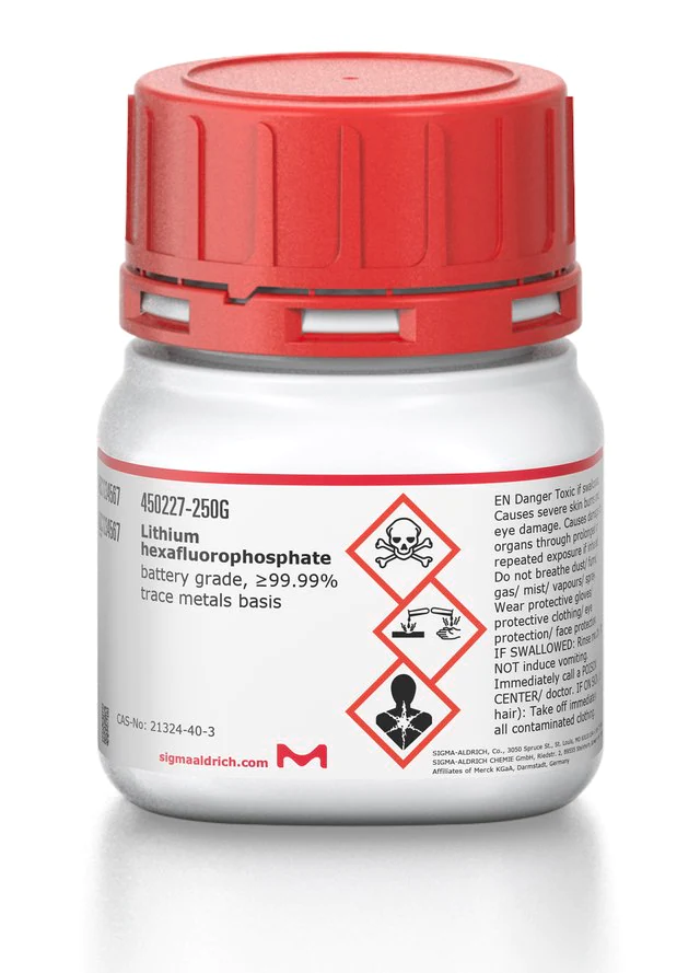 | Other Notes【其他说明】 | We are committed to bringing you Greener Alternative Products, which adhere to one or more of The 12 Principles of Greener Chemistry. This product has been enhanced for energy efficiency. Find details here. Preparation and characterization of lithium hexafluorophosphate for lithium-ion battery electrolyte. |