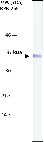 | technique(s) | immunocytochemistry: suitable using 2% formaldehyde-acetone or 10% formalin/methanol-1% NP-40 immunoprecipitation (IP): suitable indirect ELISA: suitable western blot: 0.2-0.4 μg/mL using a whole extract of 3T3 (mouse fibroblasts) cells |