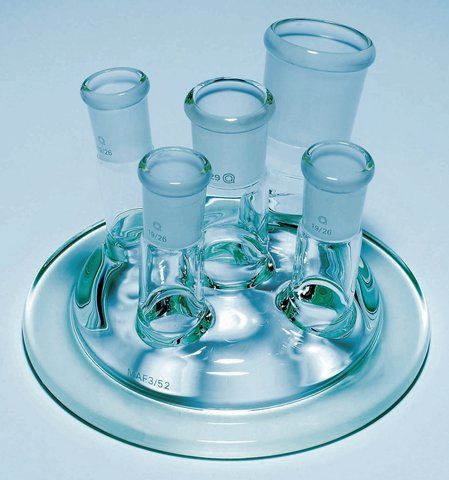 | General description【一般描述】 | Single and multi-socket lids for reaction flasks for simple extraction, reflux or for the introduction of a variety of stirrers, dropping funnels, temperature probes etc. Use clip to secure lid to flasks, purchase separately. |