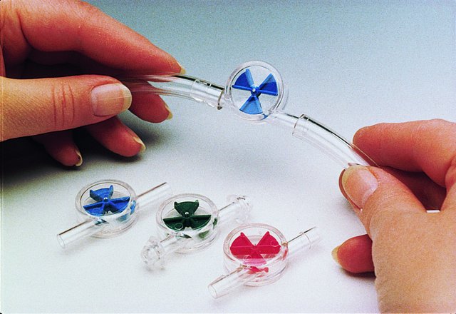 | General description【一般描述】 | Colored paddle wheel spins freely with liquid or gas flow (range: 0.5 to 10 L/min). Made of clear PS. Not for use with corrosive fluids nor at temperatures above 64 ℃. |