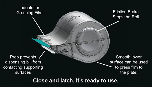 | General description【一般描述】 | Excel Scientific′s unique SealMate™ system provides a convenient new method for sealing standard-format microplates with adhesive films. The system includes a molded polypropylene dispenser with a hinged "clamshell" design and sealing films supplied in a novel sheeted-roll configuration. The SealMate™ dispenser provides a protective enclosure for films on the roll prior to dispensing. It can be opened, permitting insertion of a new roll, then closed and latched securely by means of clasps at each side of its film-dispensing "bill". ndividual films on the roll are delineated by non-adhesive color bands that serve as end-tabs for positioning the films on the microplates. The bands also act as markers to show when the end of one film has been reached so that the next film is not pulled prematurely from the dispenser. Each non-adhesive band contains two perforations, the first of which, bounded by a small indent at the edges, tears easily to separate the sheet being dispensed from the next sheet on the roll. The second perforation permits the end-tab to be removed from the plate once the film has been applied. Several unique features contribute to ease and usability of the SealMate™ dispenser. A compression-brake mechanism prevents the roll from turning as the dispensed sheet is separated from the roll. The smooth lower surface can be swept across the film once applied to the plate to assure secure sealing around all wells. Thumb and forefinger notches above and below the film at the edge of the dispensing bill provide access to the non-adhesive band to facilitate pulling the next film from the dispenser. A prop on the lower surface prevents the bill from contacting the supporting surface when the dispenser is not in use. Alternatively, the dispenser can stand on one of the hubs at the roll ends during storage. The dispenser, thus parked, provides protection and keeps unused films handy for sealing subsequent plates without the need for opening small boxes or pulling individual films from plastic bags. The SealMate™ system reduces laboratory waste because the film is rolled on itself with no extra paper or plastic liner to be discarded before sealing the plate. SealPlate® Films SealPlate® 38 μm thick polyester films minimize evaporation, prevent spillage and contamination between wells, and provide a secure seal, not just a cover. They are recommended for ELISA tests, general incubation, and short-term storage. Temperature range: -40 ℃ to +120 ℃. SealPlate® films are non-pierceable. Each SealPlate® roll contains films to cover 100 microplates. Color code: green AeraSeal™ Films AeraSeal™ 140 μm thick hydrophobic porous films with medical-grade adhesive provide non-cytotoxic breathable closures for tissue culture plates, bio-blocks, and 96-well plates where gas exchange is necessary for cellor bacterial growth. AeraSeal™ films allow uniform air and CO2 exchange for all wells, unlike plate lids which favor exchange for wells near plate edges. Temperature range: -20 ℃ to +80 ℃. AeraSeal films are easily pierceable with pipets or pipet tips for sample recovery. Each AeraSeal™ roll contains films to cover 50 culture plates. Color code: red |