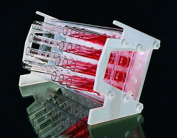 | General description【一般描述】 | Unique end plate design allows 5° or 20° slant when rack is set down on side. Autoclave media upright, then allow to cool on a side. Media will harden with perfect, consistent slant. Also useful for incubating liquids on a slant for better aeration. Rack holds 40 tubes (4 × 10 array); keyed with numbers and letters. Stackable; will not float in water bath. Autoclaving will reduce strength over time. |