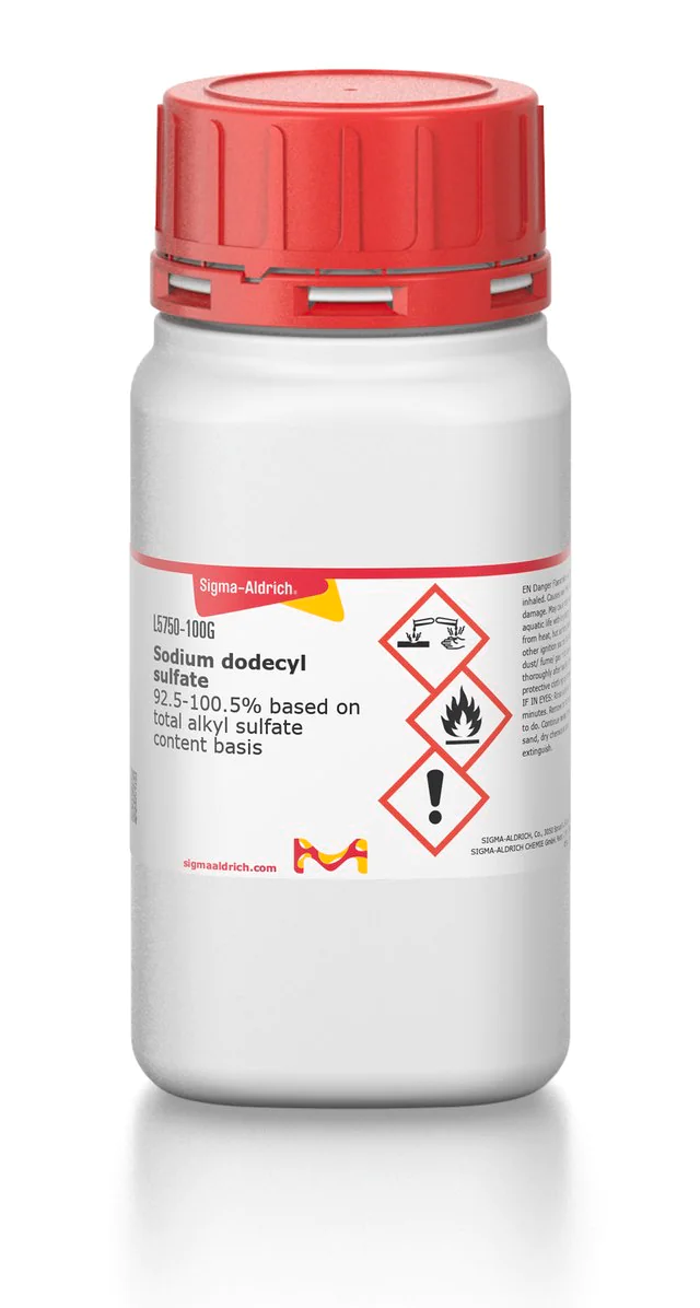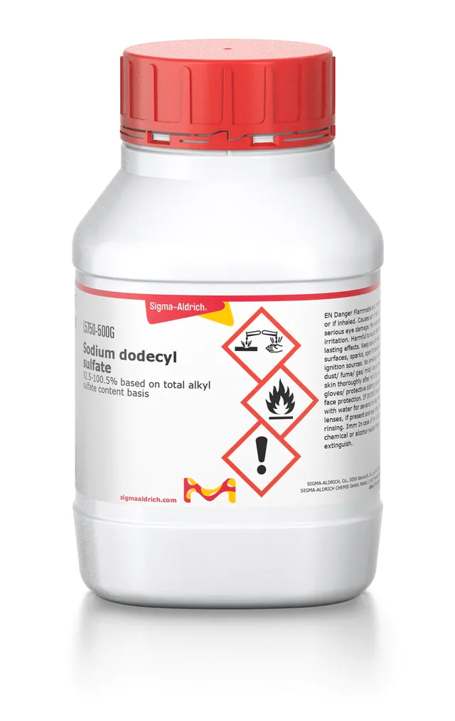 | Biochem/physiol Actions【生化/生理作用】 | 十二烷基硫酸钠(SDS)/十二烷基硫酸钠是一种离子去污剂,具有破坏生物膜的能力。它可以阻断核糖核酸酶(RNase)和脱氧核糖核酸酶(DNase)活性。SDS是几种试剂的主要成分之一,可用于核酸纯化。它也被认为是口服制剂中的渗透性增强剂。 |