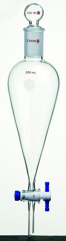 SynthwareTM Squibb-style separatory funnel with PTFE stopcock and PTFE stopper
