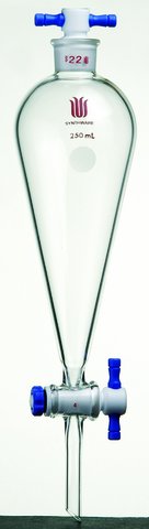 SynthwareTM Squibb-style separatory funnel with PTFE stopcock and PTFE stopper