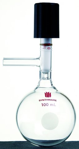 SynthwareTM storage flask with high vacuum valve and side arm
