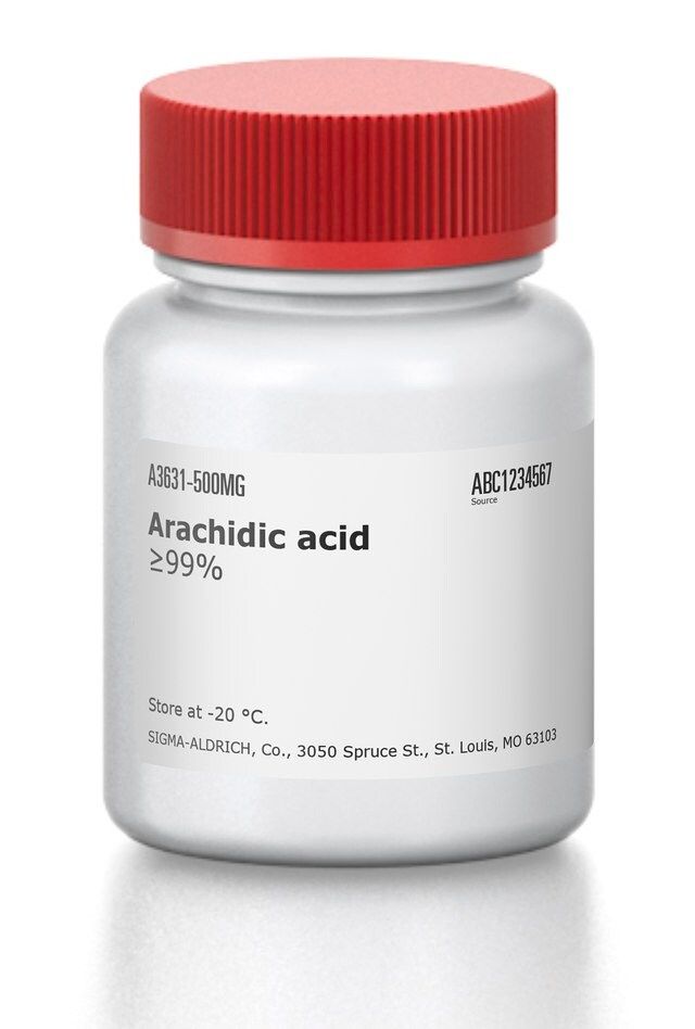 | Biochem/physiol Actions【生化/生理作用】 | 花生酸是一种 20 碳链的饱和脂肪酸。花生酸天然存在于鱼和植物油中。富含饱和脂肪(如花生酸)的饮食与血清低密度脂蛋白水平升高相关。 |