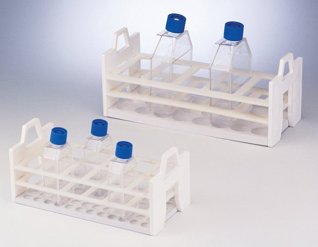 | General description【一般描述】 | Rugged white polypropylene is chemical and corrosion resistant and steam autoclavable at 121℃ (250°F). Racks to hold either 25cm² or 75cm² (50-75ml or 250-260ml) or similar sized flasks in an upright position during processing of tissue cultures.