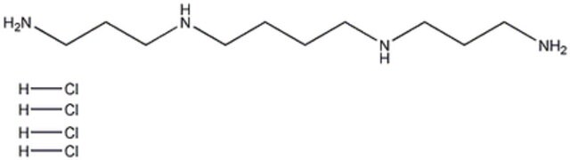 | General description【一般描述】 | Polyamine that plays an important role in the regulation of cellular proliferation and differentiation. Acts as an inhibitor of phopholipase C-α and an activator of phopholipase C-δ. Has both stimulatory and inhibitory effects on NMDA receptors depending on the subunit composition of the receptor. Inhibits neuronal NOS. Inhibits DNA fragmentation and morphological apoptosis. Polyamine that plays an important role in the regulation of cellular proliferation and differentiation. Has both stimulatory and inhibitory effects on NMDA receptors depending on the subunit composition of the receptor. Acts as an inhibitor of phospholipase Cα and an activator of phospholipase Cδ. Inhibits DNA fragmentation and morphological apoptosis. Inhibits neuronal NOS. |