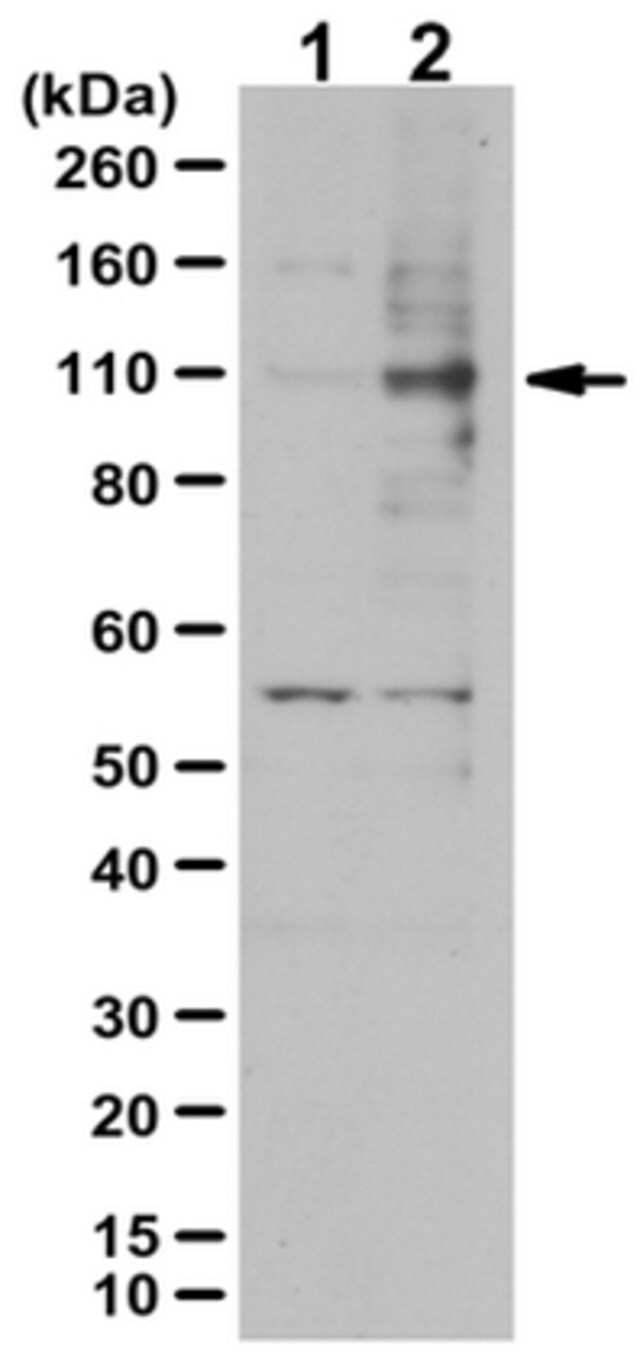 | Target description【目标描述】 | ~110 kDa observed. The target band size appears larger than the calculated molecular weight (81.7 kDa/isoform 1 & 61.1 kDa/isoform 2). Uncharacterized band(s) may appear in some lysates. |
