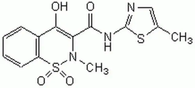 | General description【一般描述】 | A cell-permeable, non-steroidal anti-inflammatory drug (NSAID) of the oxicam family which preferentially inhibits the inducible isoform of COX-2 (IC50 = 4.7 µM) relative to COX-1 (IC50 = 36.6 µM). Also inhibits the growth of colorectal cancer cells in vitro. A cell-permeable, non-steroidal, anti-inflammatory drug (NSAID) of the oxicam family that preferentially inhibits the inducible isoform of cyclooxygenase-2 (COX-2; IC50 = 4.7 µM) relative to cyclooxygenase-1 (COX-1; IC50 = 36.6 µM). Also inhibits the growth of colorectal cancer cells in vitro. |