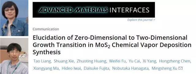 近日,浙江大学高分子科学与工程学系、硅材料国家重点实验室陈红征教授团队的徐明生教授研究小组在二维硫化钼化学气相沉积(CVD)生长方面有新的发现,相关工作“Elucidation of Zero-Dimensional to Two-DimensionalGrowth Transition in MoS2 Chemical Vapor Deposition Synthesis”发表在10月24日的《Advanced Materials Interfaces》上。