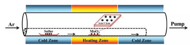 | 图示:CVD工艺中硫源与钼源放置的相对位置示意图 |