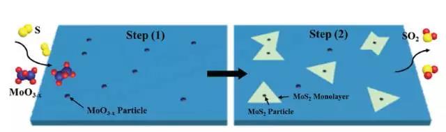 | 图示:MoS2从零维到二维的两步生长过程示意图 |