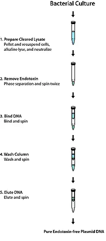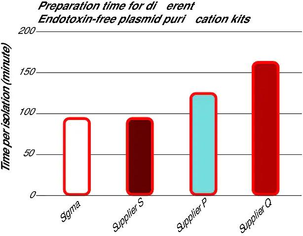 | General description【一般描述】 | GenElute 无内毒素质粒制备试剂盒可以简单、快速、低成本的纯化质粒DNA(内毒素水平≤0.1 EU/μg),所得产物可用于高效转染。内毒素(也称为脂多糖或LPS)常常会与质粒DNA共纯化,这会显著降低内毒素敏感细胞系的转染效率。 通过离心分离法从过夜培养的物中收集重组大肠杆菌,并采用SDS改性碱裂解法处理以形成澄清的裂解液。通过简单的萃取相分离步骤去除掉内毒素。在高盐环境下,质粒DNA吸附到硅胶膜上接受进一步的纯化。通过简单的离心洗涤步骤处理后,在无内毒素的水中洗脱结合所得的质粒DNA。从25~200 mL培养物可以制备出多达1.2 mg不含内毒素的质粒DNA。 回收的质粒DNA主要以超螺旋形式存在。此类DNA可直接用于转染、限制性酶切、克隆、测序和PCR扩增等下游应用。 |