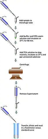 | Components【组分】 | 组份不可单独销售 Incubation buffer 25 mL FITC-casein solution 5 mL Assay buffer 200 mL Protease standard (trypsin) 20 μg FITC control 50 mg Trichloroacetic acid (TCA) solution 30 mL |