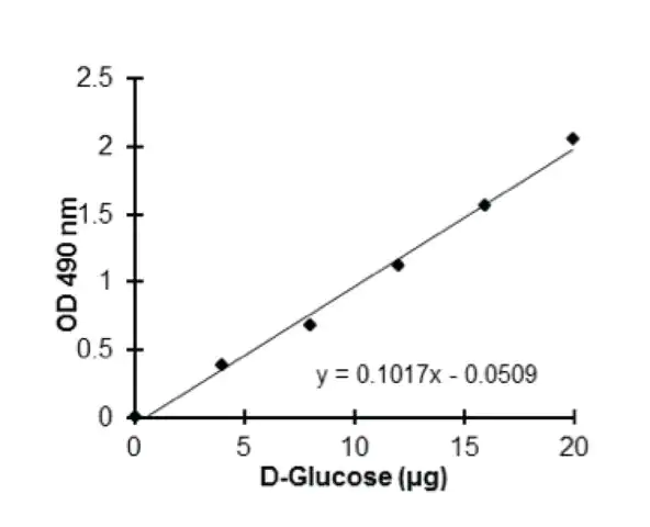 | Principle【原理】 | 该试剂盒利用苯酚-硫酸法测量总碳水化合物浓度,其中多糖被水解并转化为糠醛或羟基糠醛。这些化合物与显色剂反应生成发色团,该发色信号可用分光光度法在490 nm处检测到。 |