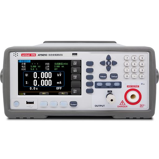 AT9210系列交直流耐压绝缘测试仪采用5寸彩色液晶显示屏(带触控),同时搭载主流高性能的32位ARM处理器。体积小、重量轻 (8kg),超高性价比,操作方便。 AT9210系列配备Handler(PLC)、RS232C接口可方便地与PC进行数据通讯和远程控制, 满足自动化测试,提高生产效率。